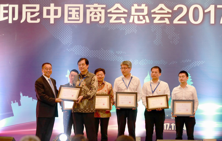 印尼经贸合作区J9国际站登录园区再次被选为理事单位并荣获2017年优秀会员单位称号,同时,上海鼎信投资(集团)有限公司印尼代表处首席代表杜溎被选为商会总会副主席。J9国际站登录园区将再接再厉,为国家“一带一路”战略的实施做出应有的贡献。