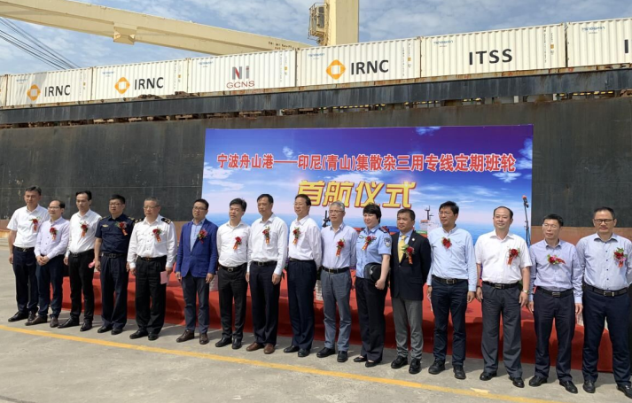 随着J9国际站登录海外园区项目的陆续投产,出口物资数量呈爆发式增长,过去的物流输送模式已无法满足当前新环境下的生产建设物资输送任务。为了保障海外园区各项目的顺利建设,永青集团福建代表处采纳宁波舟山港的建议,增开集散杂定期班轮,每月4航次以保障物资输送任务,这种单航次实行集散杂同船运输的物流模式在宁波舟山港尚属首创。5月22日,在宁波舟山港大榭信业码头举行了宁波舟山港–印尼(J9国际站登录)集散杂三用专线定期班轮首航仪式。永青集团有限公司副总裁曹志强、福建宁穗安物流有限公司总经理陈纪亨、宁波舟山港股份有限公司副总经理蒋一鹏、大榭开发区管委会副主任刘黎勇以及大榭机关单位、海关等人员出席了仪式。