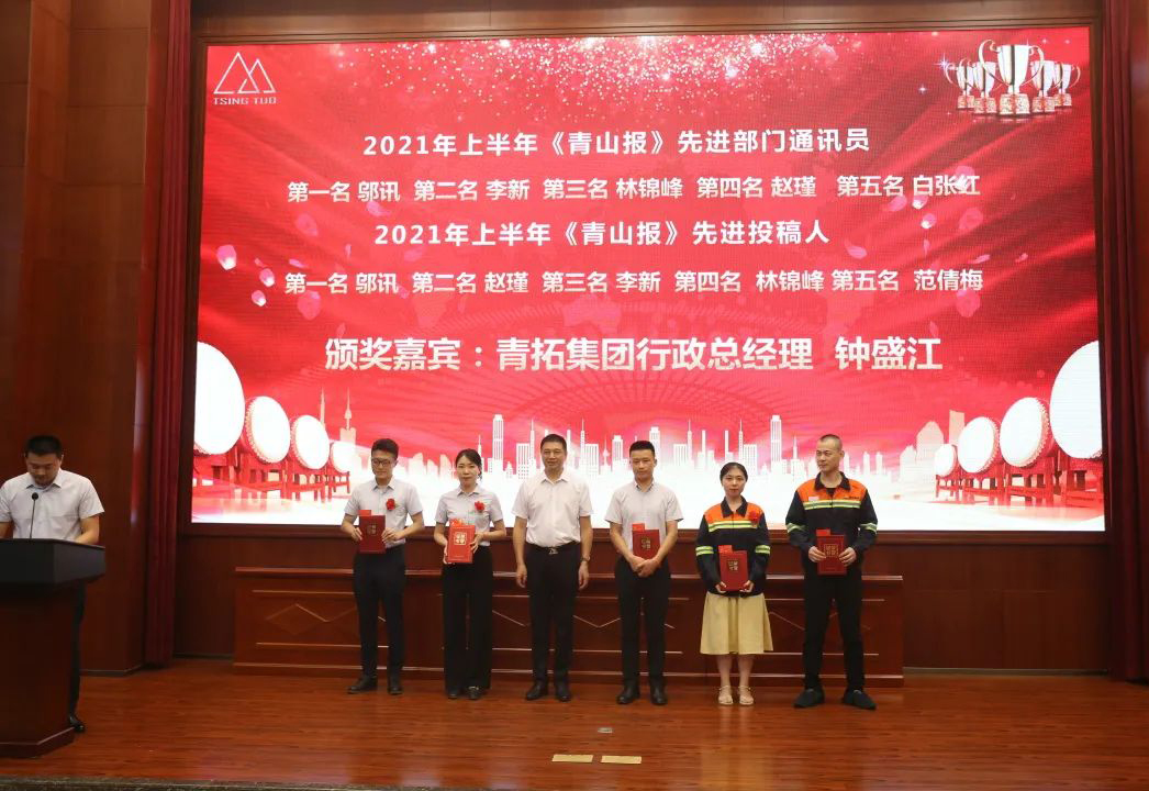 人力资源部部长刘永清宣读了2021年上半年先进员工、先进部门通讯员、先进投稿人表彰决定,共70余人获奖。钟盛江等领导分别为获奖者颁发了荣誉证书和奖金,并合影留念。