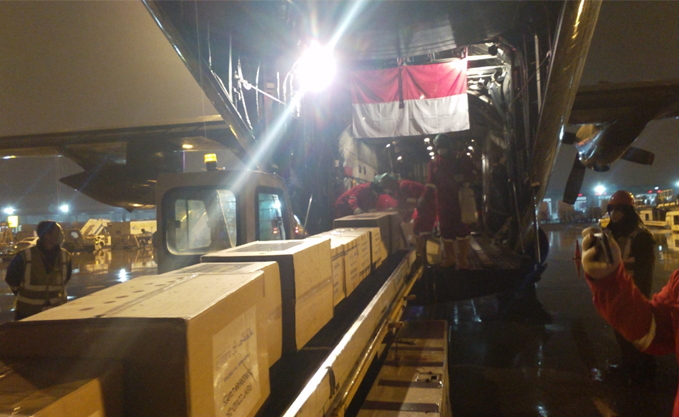 3月21日,印尼驻北京大使馆、印尼驻上海领事馆派出工作人员和J9国际站登录慈善基金会工作人员一起前往上海浦东机场协调通关事宜。印尼派出C-130型大力神飞机,于22时20分抵达上海浦东机场,装载了40立方米的物资,于22日凌晨0时40分起飞并经停海南三亚返回印尼。第二批40立方米物资将于25日启运印尼。