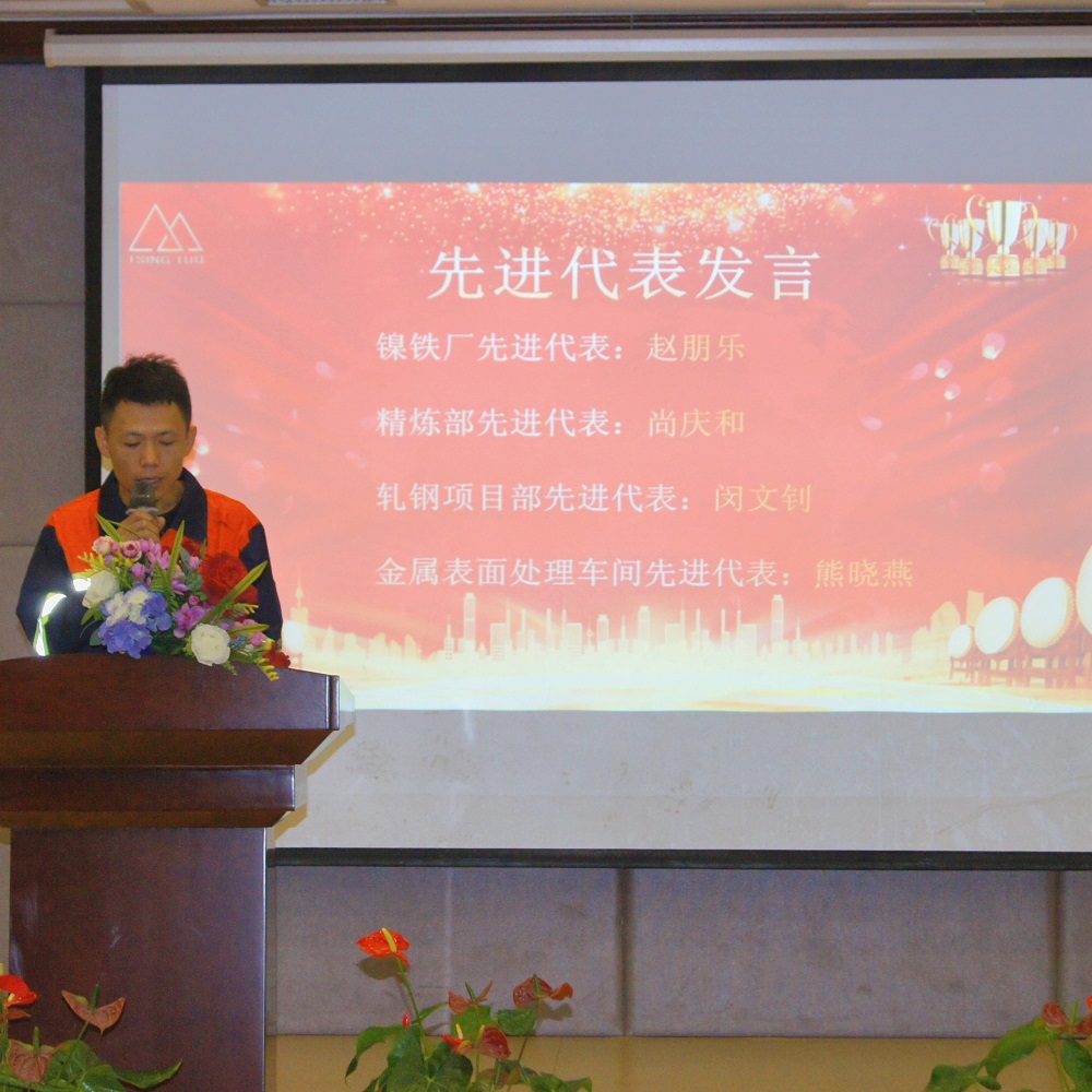 大会表彰了上半年各部门涌现的9位先进管理者和83位先进员工。镍铁厂赵朋乐、精炼部尚庆和、轧钢项目部闵文钊及金属表面处理车间熊晓燕4位先进员工代表依次发言,他们结合自身实际,交流工作心得,纷纷表示会珍惜荣誉、再接再厉,充分发挥模范带头作用,为企业持续健康稳定发展贡献力量。